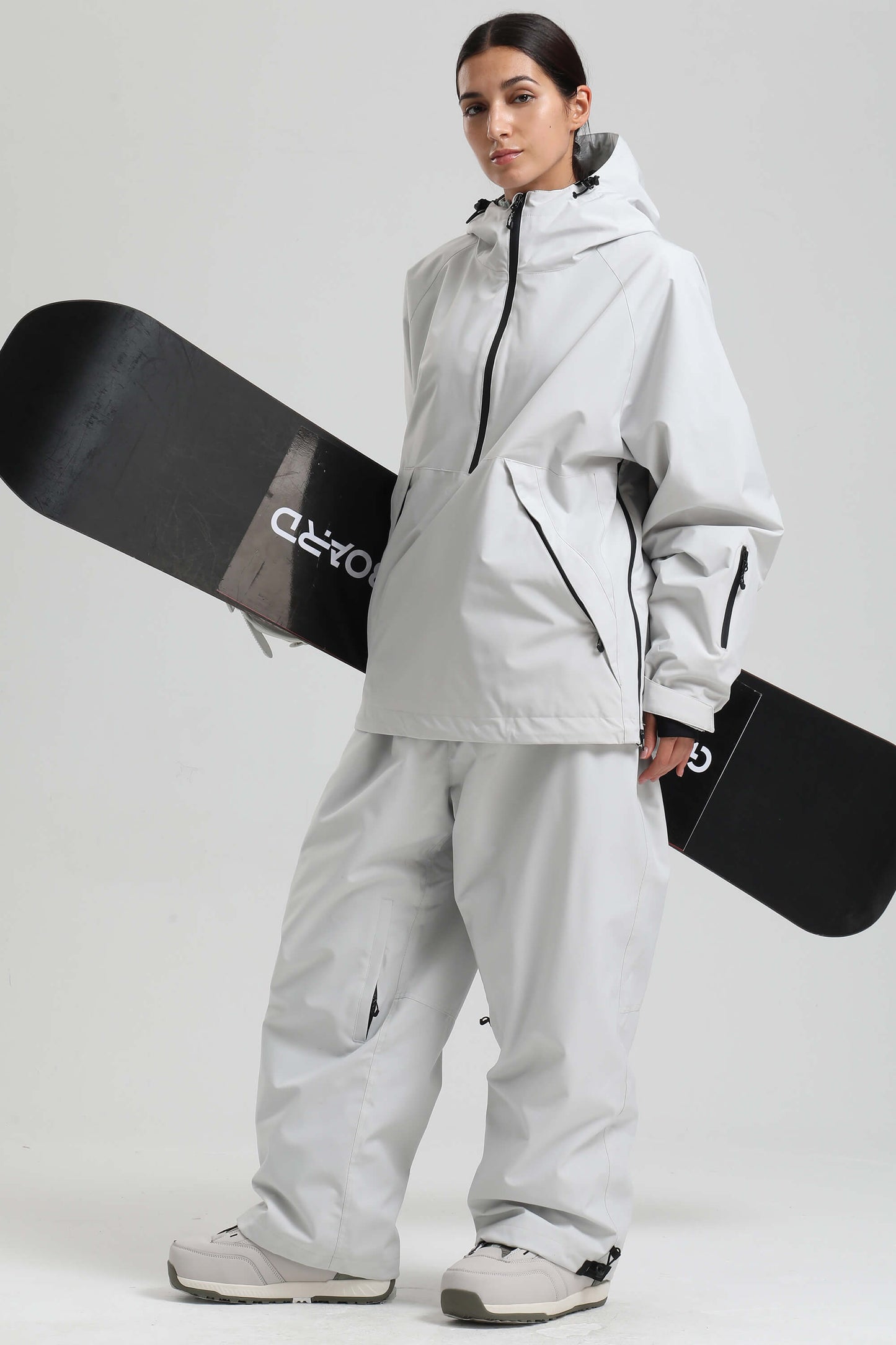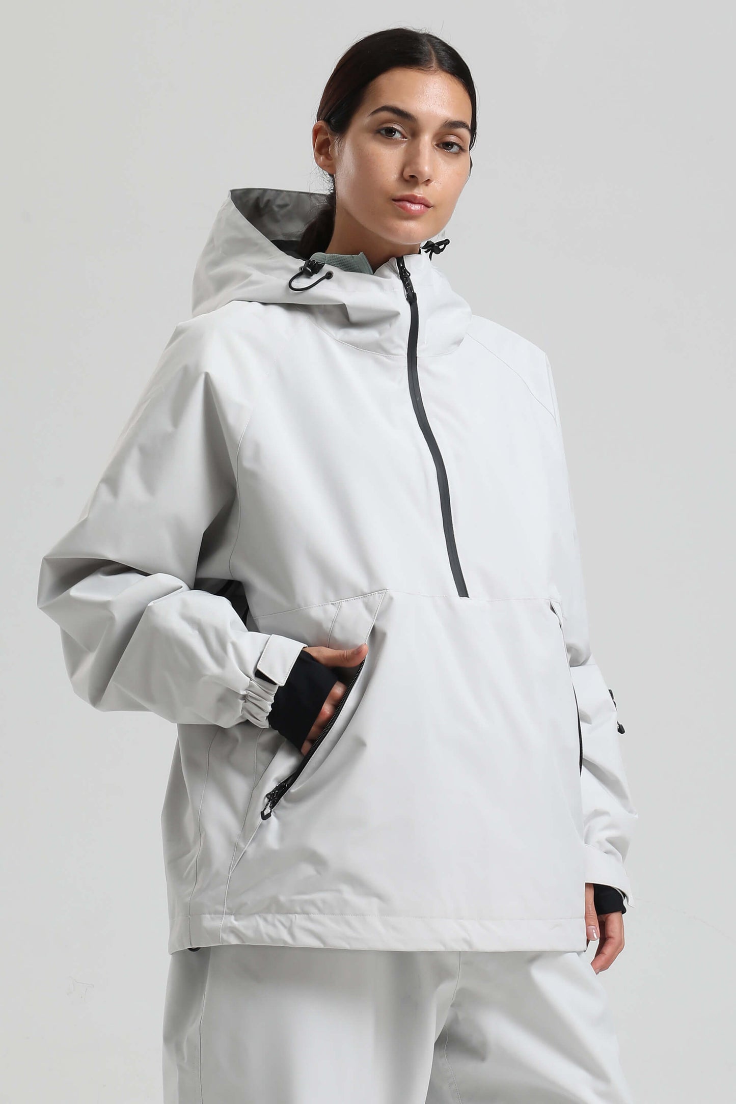Women's Light Grey Minimalist Half-Zip Waterproof Insulated Snow Anorak
