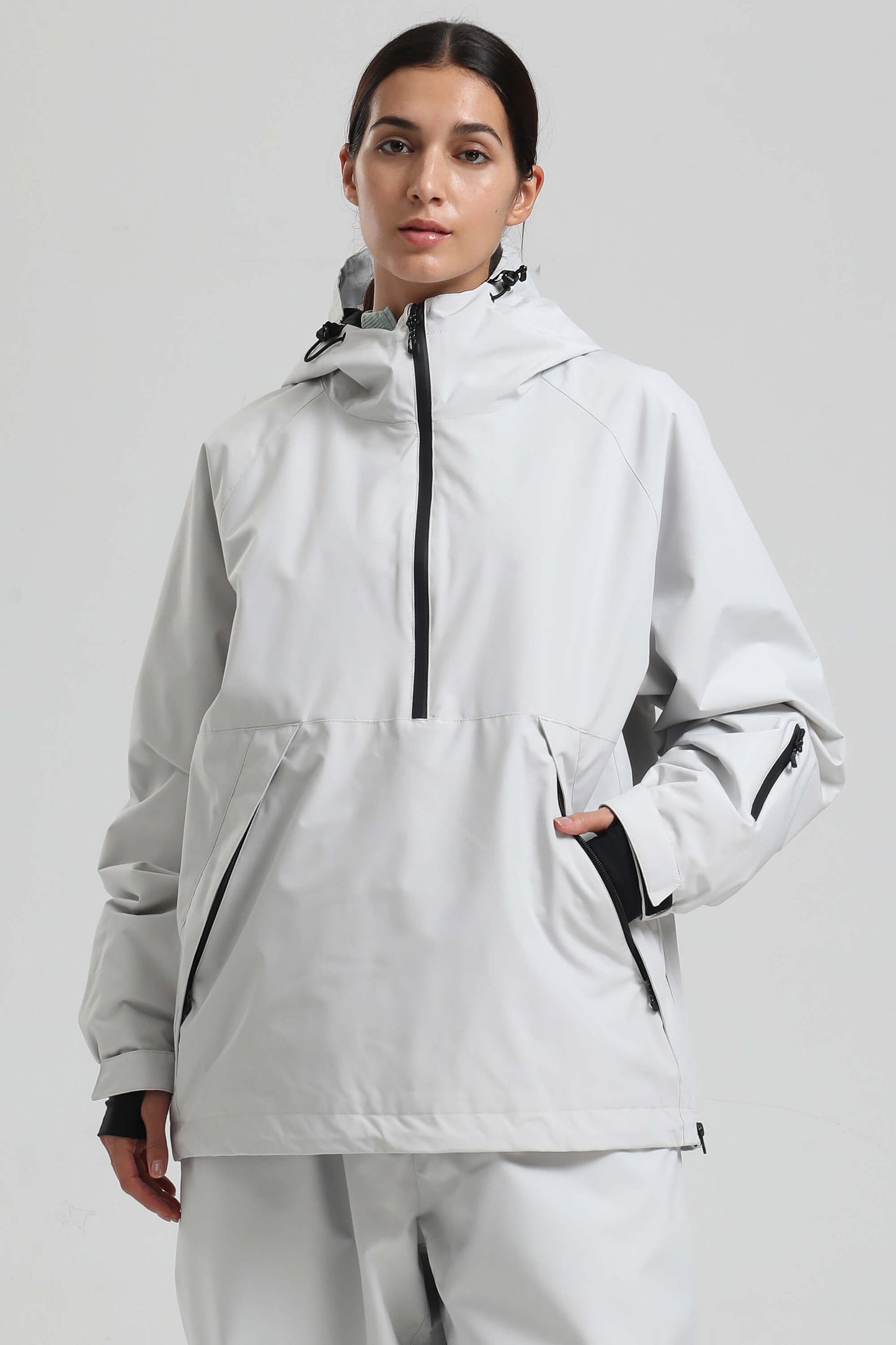Women's Light Grey Minimalist Half-Zip Waterproof Insulated Snow Anorak